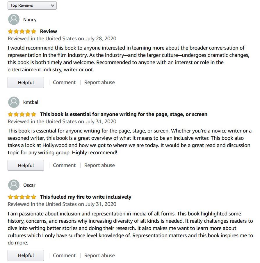 “How to Write Inclusively: An Analysis & How To Guide,” was a #1 new release in Amazon’s, “Play and Scriptwriting Reference,” and “Playwriting,” book categories within two weeks! The book is for any person interested in how to write diverse characters. Paperback and Kindle versions are available here. In the spirit of service, 5% of proceeds will be donated to a food bank.